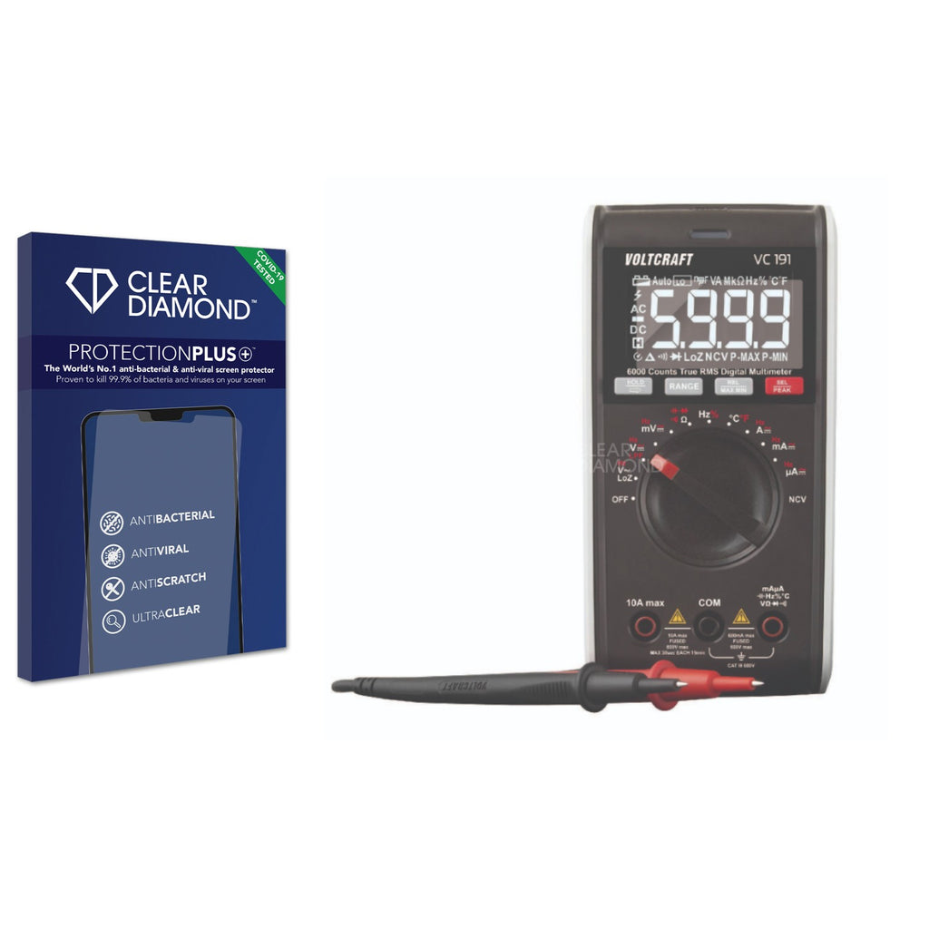 The Clear Diamond Screen Protection film for Voltcraft VC191 is easy to install and provides anti-bacterial, anti-viral and anti-scratch protection for your touchscreen with a crystal-clear finish. Display Protection is key to maintaining a touchscreens integrity and the patented Protection Plus+ anti-bacterial hard-coat layer in Clear Diamond Screen Protection Films enables you to protect your screen and yourself.